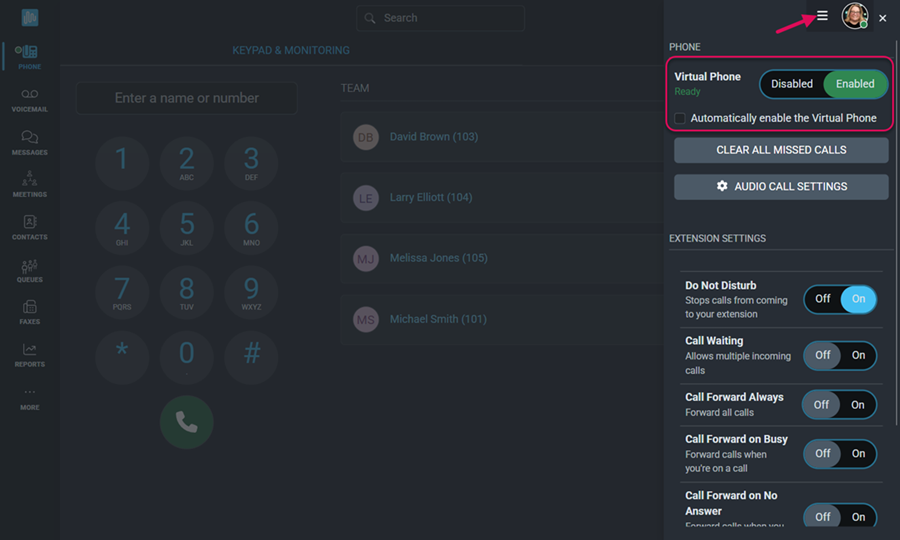 To get started with Intulse in NextAgency, the first step is to enable the 'Virtual Phone' feature in your Intulse settings.