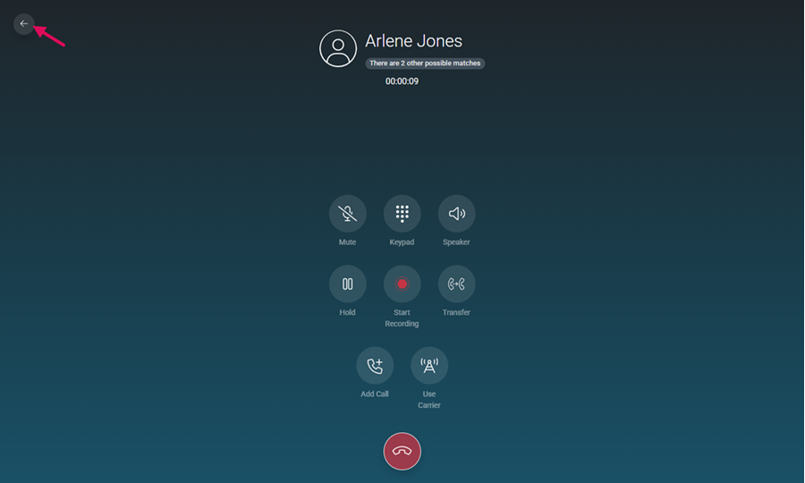 After the call has begun, simply tap the back button. Then, when you're on the Intulse page, click on 'Call Actions' > 'Start Recording' to begin recording the call.