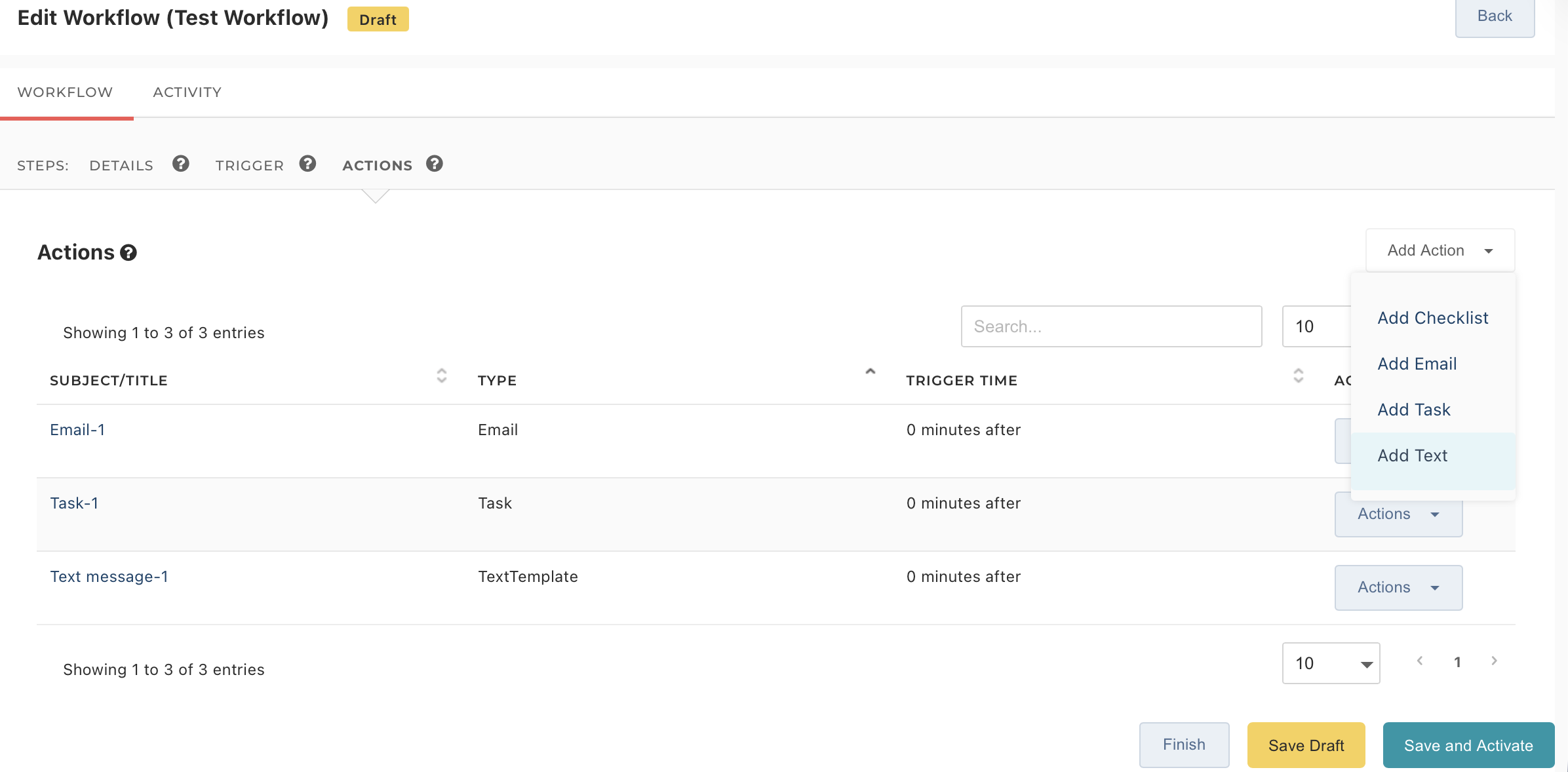 Finally, click Save and Activate to enable the workflow. Your text messages will now be sent automatically when the criteria you set in the Trigger step are met.