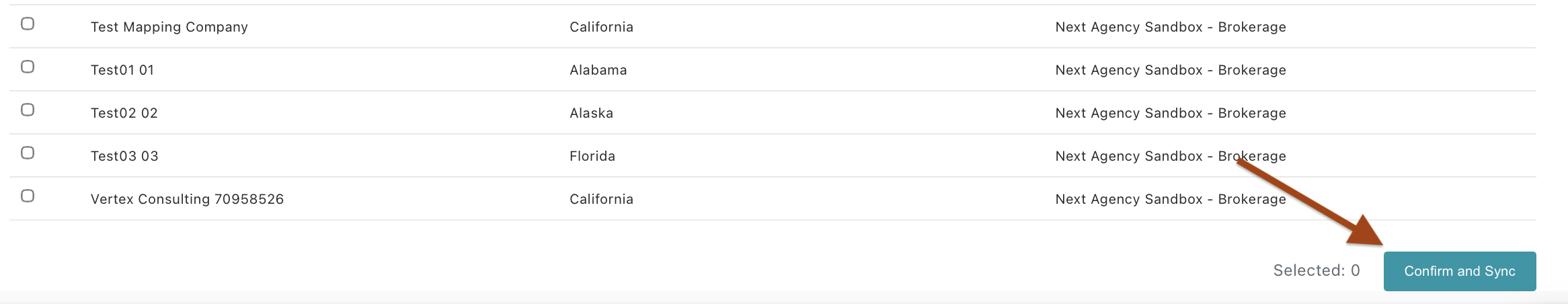 - Click Confirm and Sync. Only the selected companies will be synced.