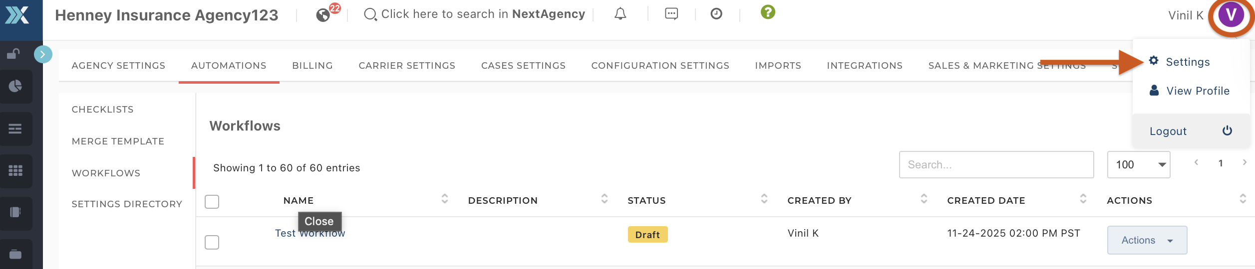 - Go to Settings > Automations > Workflows.