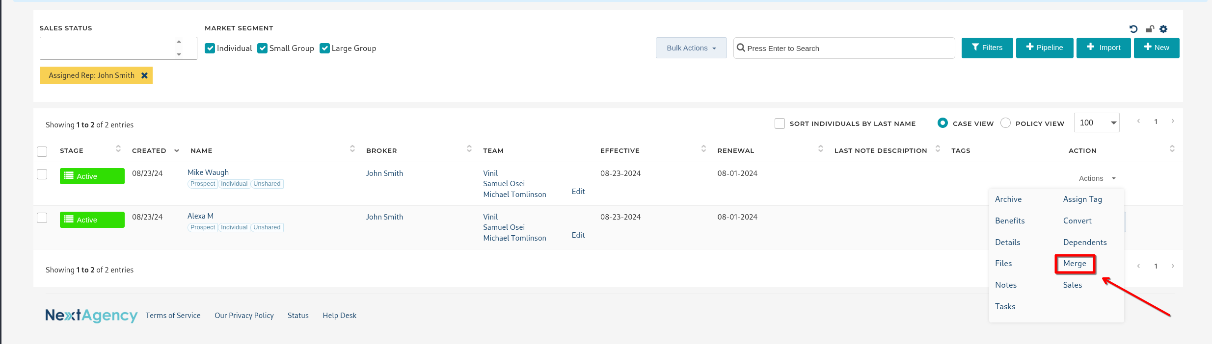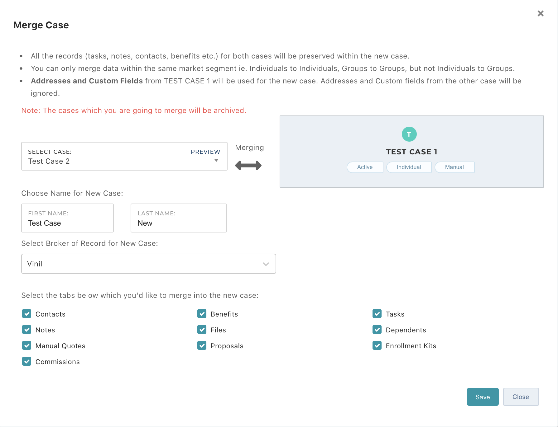 - Quote: Send a quote request for the case to a carrier or general agency.